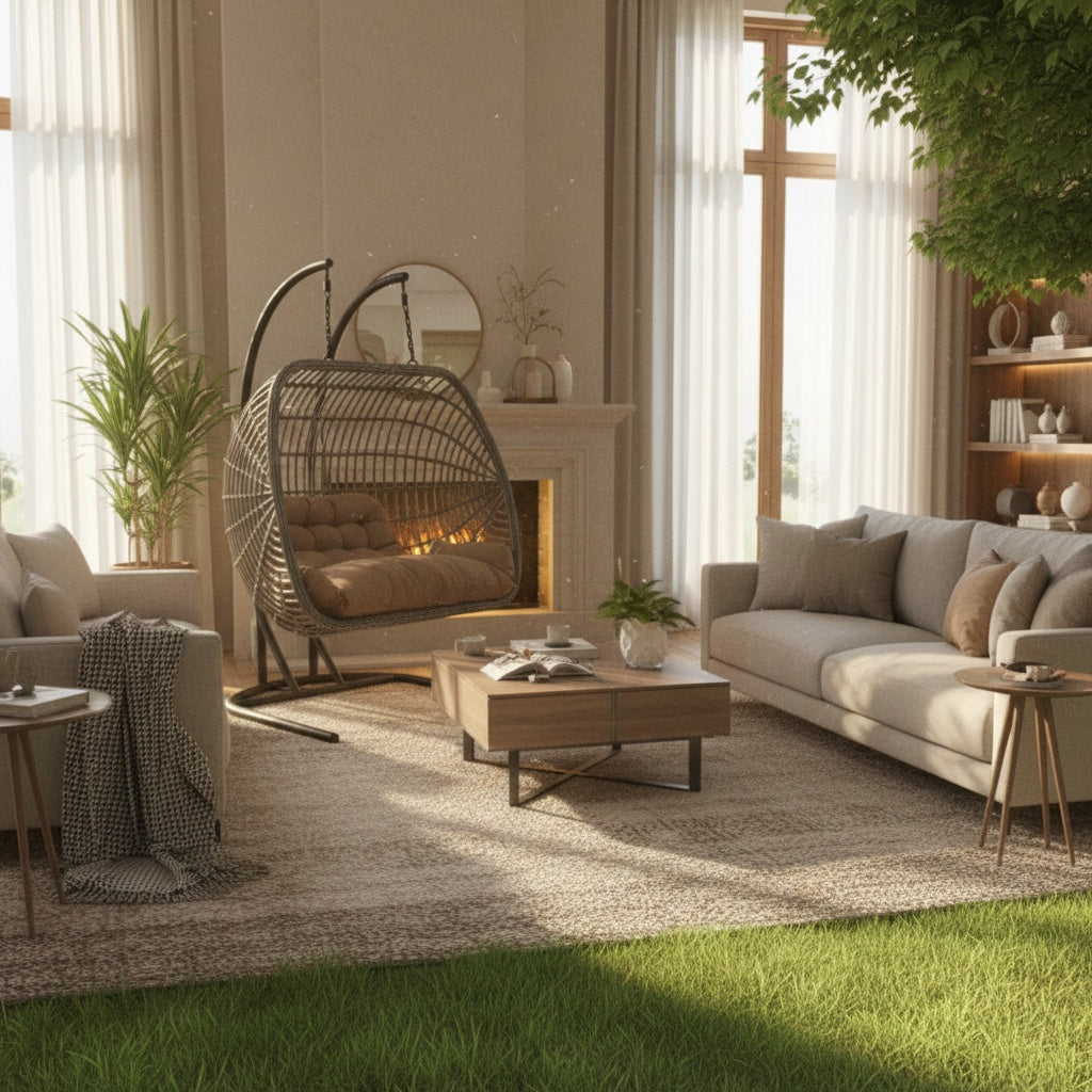 Two-Person Patio Swing Chair – Durable Rattan Frame with Comfortable Cushions